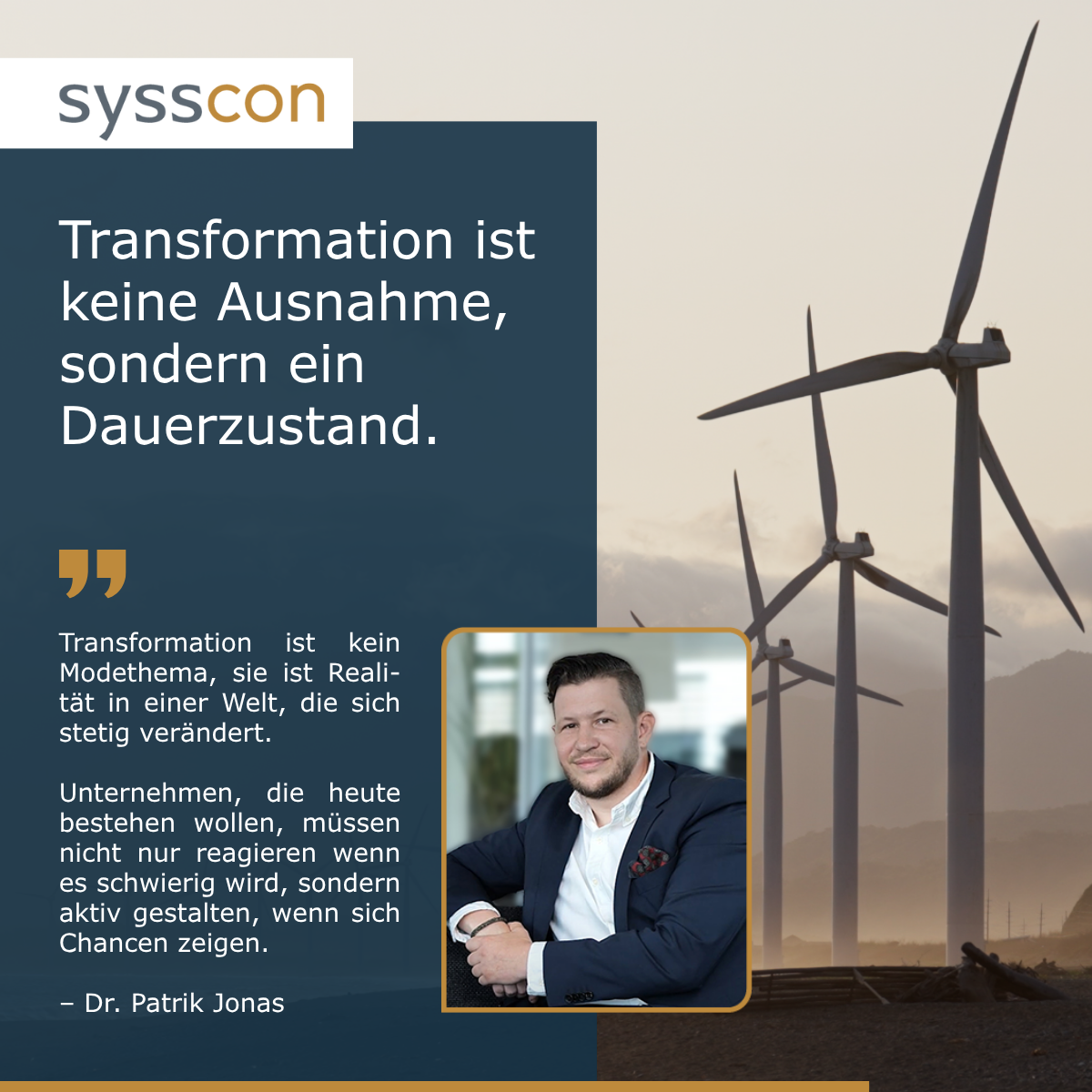 sysscon ist der Transformationspartner fรผr mittelstรคndische Unternehmen, die nicht stehen bleiben wollen. Seit รผber zwei Jahrzehnten begleiten wir Unternehmerinnen und Unternehmer durch herausfordernde Phasen โ mit Klarheit, operativer Tiefe und strategischem Weitblick.